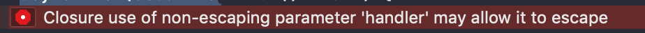 물론 에러를 누르고 fix를 하면 자동으로 클로져에 @escaping 가 붙는다.