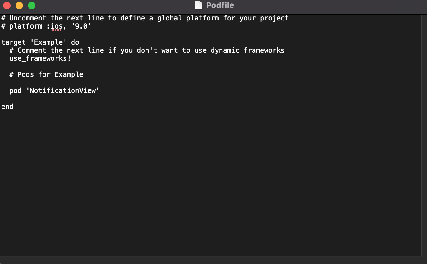 pod 'NotificationView', :path => '~/Documents/NotificationView'
