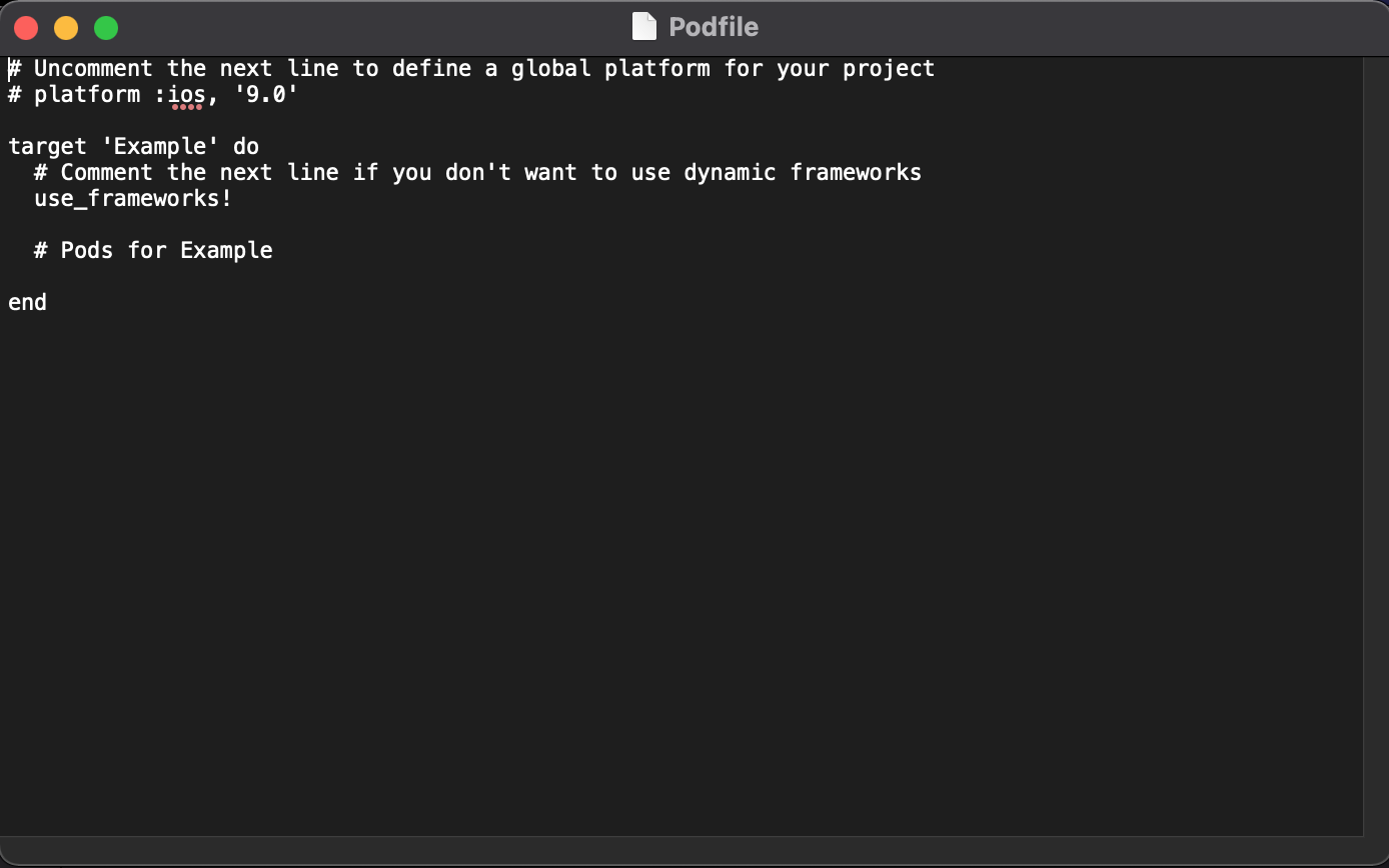 그럼 podfile이 생성이 되고 podfile을 텍스트편집기로 열어보면