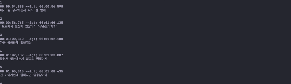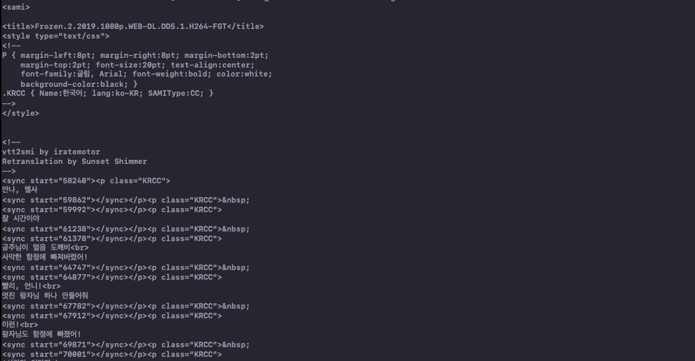 srt파일이나 smi파일안에 한글이 있다면 아래와 같이 한글이 깨져서 나오게 된다.