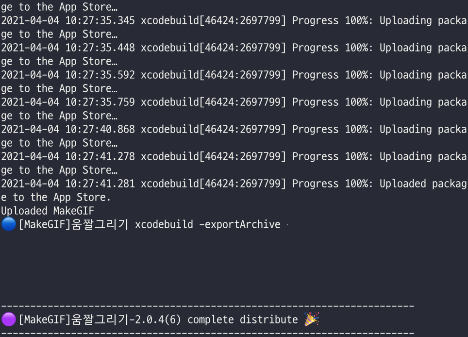 xcodebuild를 사용하여 exportArchive를 한다. (앱스토어에 업로드한다.)