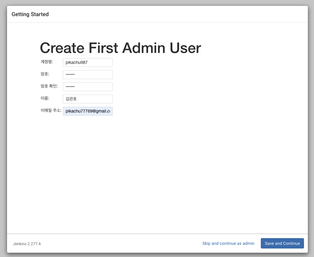 그럼 Admin User를 입력하라는 화면이 나오고 입력을 해준다.